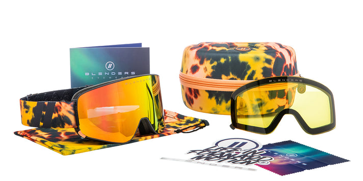 We’re all about bonuses at Blenders. With every ‘Aura’ goggle, you’ll receive a complimentary, matching Ethylene Vinyl Acetate (EVA) case, renowned for its durability and toughness. Also included is a matching drawstring cinch pouch and a spare low-light lens to help you slay the slopes no matter the conditions.