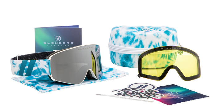 We’re all about bonuses at Blenders. With every ‘Aura’ goggle, you’ll receive a complimentary, matching Ethylene Vinyl Acetate (EVA) case, renowned for its durability and toughness. Also included is a matching drawstring cinch pouch and a spare low-light lens to help you slay the slopes no matter the conditions.