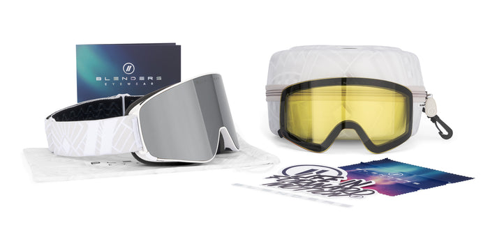 We’re all about bonuses at Blenders. With every ‘Aura’ goggle, you’ll receive a complimentary, matching Ethylene Vinyl Acetate (EVA) case, renowned for its durability and toughness. Also included is a matching drawstring cinch pouch and a spare low-light lens to help you slay the slopes no matter the conditions.