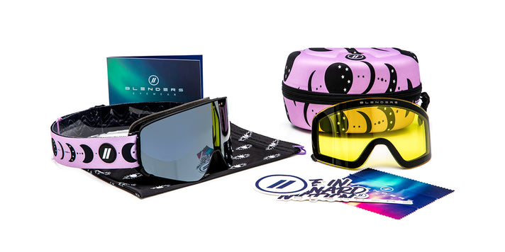 We’re all about bonuses at Blenders. With every ‘Aura’ goggle, you’ll receive a complimentary, matching Ethylene Vinyl Acetate (EVA) case, renowned for its durability and toughness. Also included is a matching drawstring cinch pouch and a spare low-light lens to help you slay the slopes no matter the conditions.