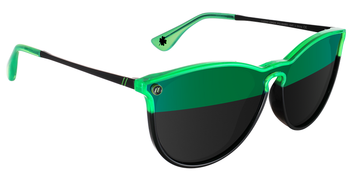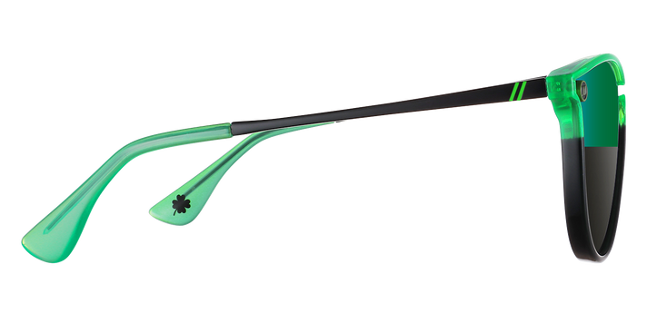 Find fortune with our limited-edition St. Patrick’s Day sunglasses! ‘Lucky Joker’ is charmingly styled with an incredible split green mirror lens that’s exclusive to our ‘North Park X2’ collection. Featuring our new PureBlend™ polycarbonate lens, the lens delivers all-world color and clarity in tandem with a masked effect for a slick look. The frame is a total wild card, fading from crystal green to crystal black. Matte-finished metal defines the temples, while a clover imprinted at the left tip stacks the odds ever in your favor.