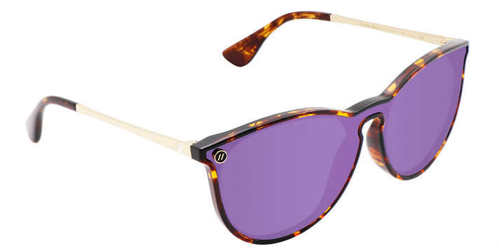 Blend Out with 'Flash Riley.' These round sunglasses are a chic and spicy entry into our ‘North Park X2’ collection. We’ve matched an eye-catching, glossy black-and-brown tortoise frame with gold-colored metal temples for a dazzling look and a high-end feel. And that lavender PureBlend™ lens? Spectacular!