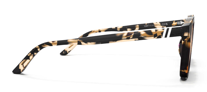A terrific tortoise pattern makes 'Tort Sydney' an instant standout — crystal tan and black tones shine from the nose bridge to the adjustable temple tips. And the amber polarized lens is the perfect complement, ensuring these comfortable shades are your future go-to.