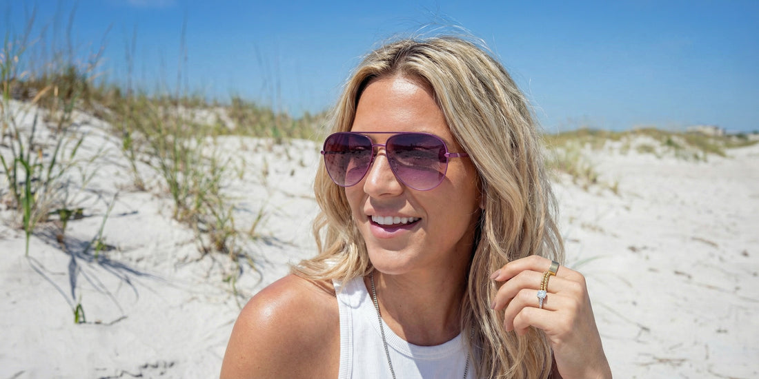 Berry Loud offers a refined take on bold color. Shiny plum plating across the frame and temples create a clean, monochromatic look, while a subtle plum-to-clear fade adds just the right pop. Finished with matching polarized plum gradient lenses, it’s confident, comfortable, and easy to wear.