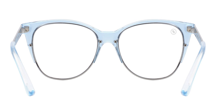 “Business casual” gets a whole new meaning with ‘Sky Mistress.’ There’s a cool, self-assured aesthetic here. The Cat Eye shape sizzles and the contrasting periwinkle coloring and silver-plated metal finishing at the temples and front frame bring wonder to your working hours. Still, these are specs styled to get sh** done, and they boast blue-light-blocking power for stopping headaches, preventing blurry vision, and promoting better sleep. It’s the best of both, here now.
