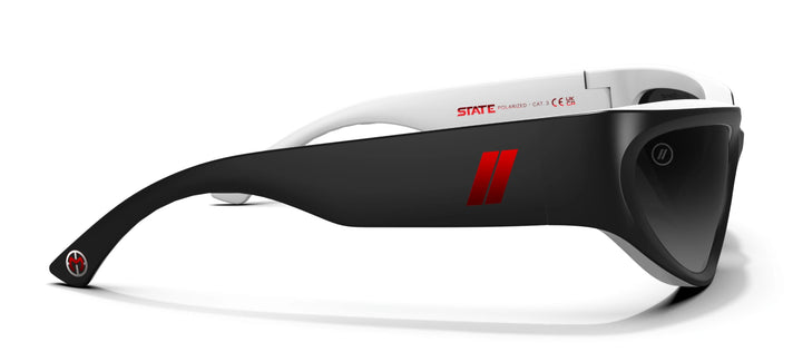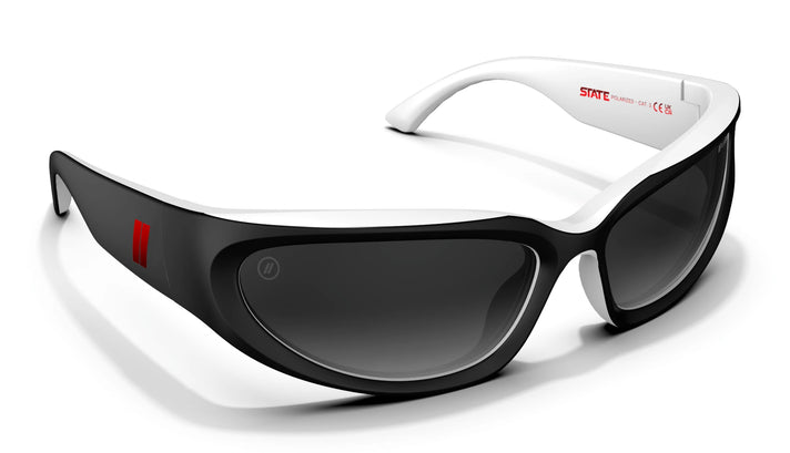 The 'Y2Skate State' sunglasses celebrate our second year of NIL partnership with MESA Foundation & SDSU, capturing the bold energy of SDSU. Featuring a sleek black, red, and white color scheme, this wrap-around design blends modern trends