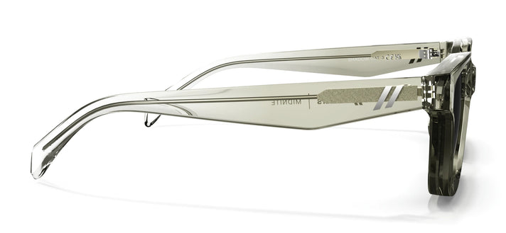 Shadow apporte une touche raffinée à Midnite grâce à sa monture ivoire transparente brillante qui ajoute une note de couleur subtile sans dominer le style. Le dégradé discret des branches vers le transparent fait écho aux verres fumés dégradés, soulignant la qualité de fabrication et le soin apporté aux détails. Couleur phare de l'année, Shadow offre une allure fraîche, moderne et facile à porter.