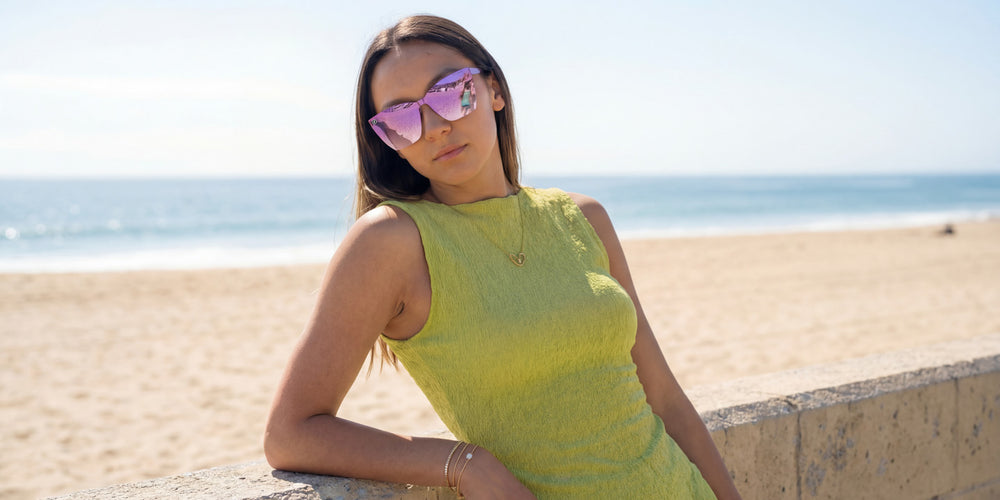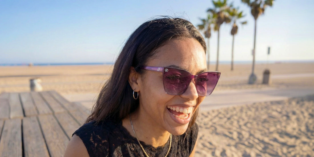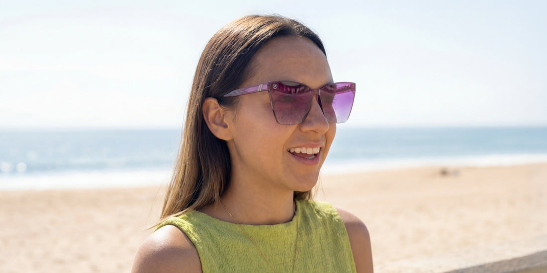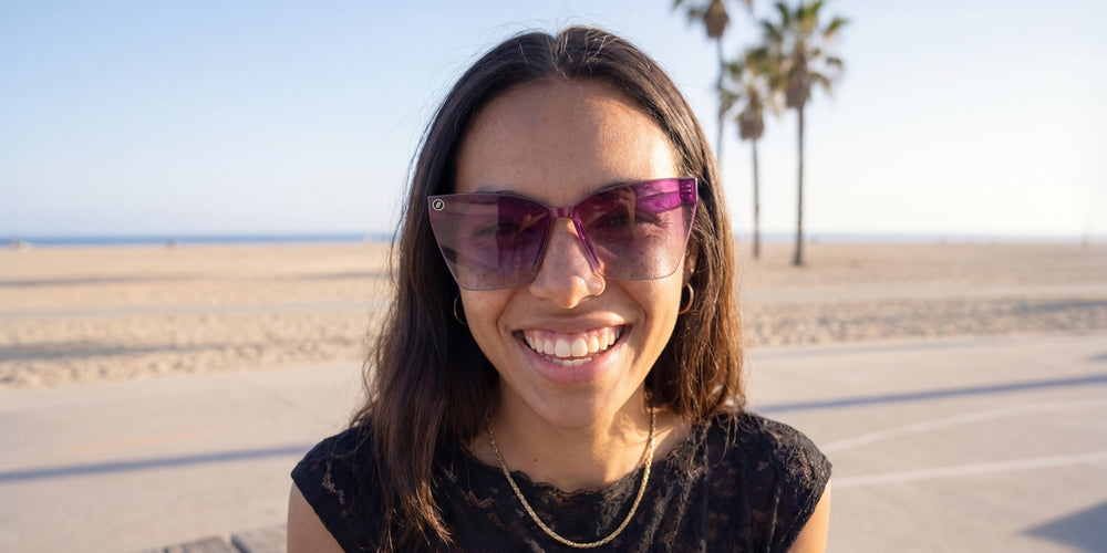 Berry Loud a été conçue comme la pièce maîtresse de la collection. Son design sans monture, avec un dégradé multicolore de violet, de bleu et de cristal, met la couleur à l'honneur, sublimée par des verres dégradés prune PureBlend™. Audacieuse, expressive et pleine d'énergie, elle est faite pour celles et ceux qui veulent attirer tous les regards.