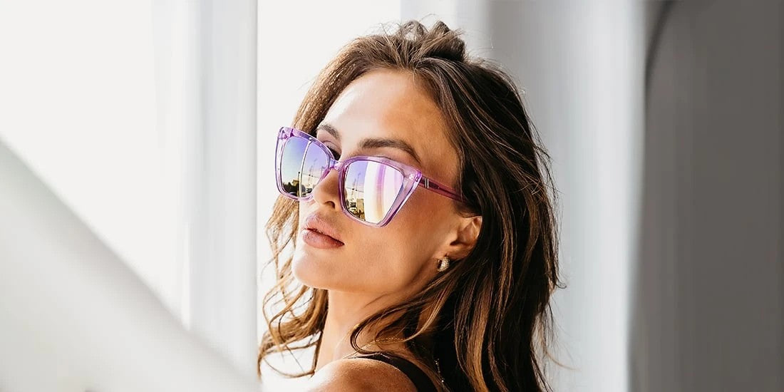 Lignes fluides. Bords doux. La superbe forme œil-de-chat « Isla Orchid Flash » est sublimée par une monture lavande et des verres Pure Blend ™ polarisés à effet miroir, parfaits pour affronter la journée.