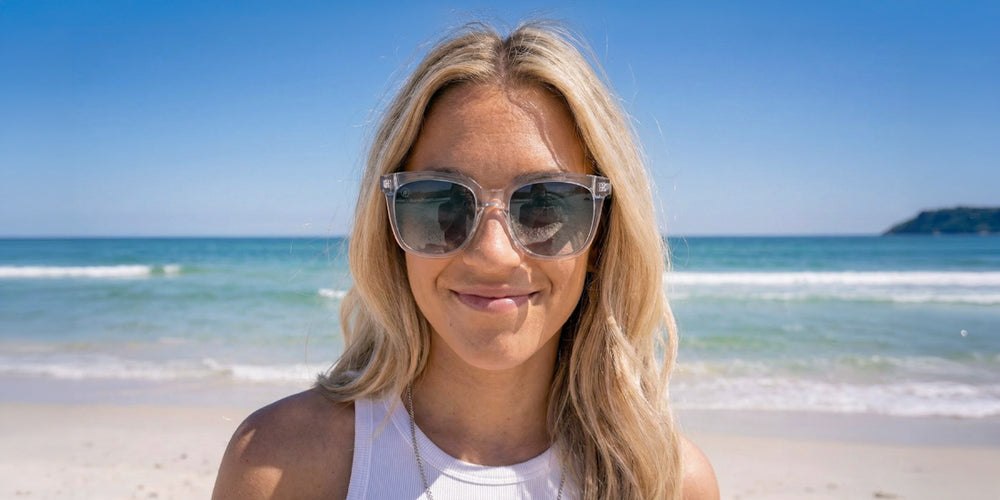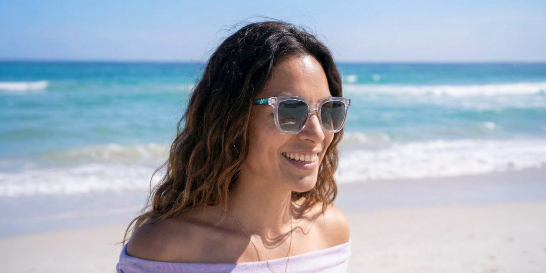 Tropical Current capture le mouvement de l'océan à travers des lignes épurées et des matériaux haut de gamme. Une monture transparente associée à des branches en acétate fabriquées à la main offre une sensation de luxe, tandis que les verres polarisés dégradés turquoise réduisent efficacement l'éblouissement. C'est la paire idéale pour un style décontracté inspiré par le littoral.