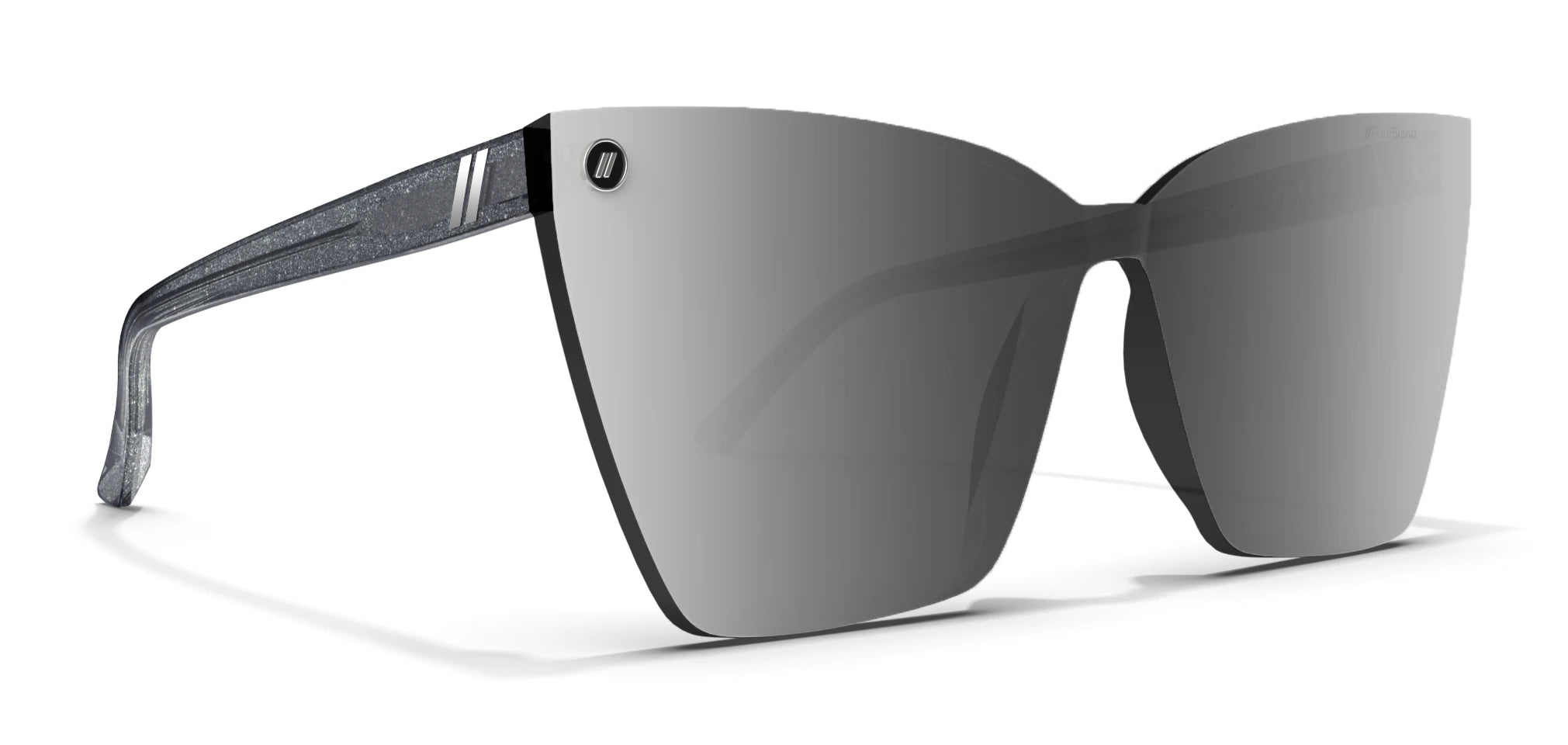 Shadow offre un style ludique aux lignes épurées et harmonieuses. Sa monture œil-de-chat sans contour met en valeur des verres PureBlend™ argentés effet miroir, tandis que les branches argentées métallisées foncées captent la lumière pour un éclat subtil. Faciles à porter et pleines de personnalité, elles sont conçues pour se faire remarquer sans effort.