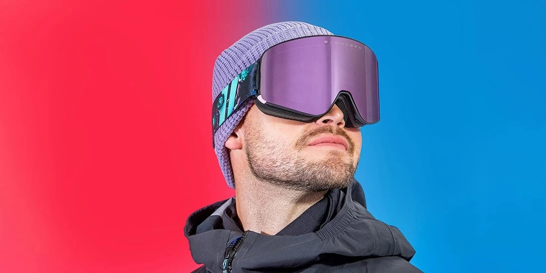 These goggles are beautiful. The purple can be pastel or deeper depending on lighting and the band is so fun and unique. I like that it comes with a hard case and an interchangeable lense for cloudy days.
