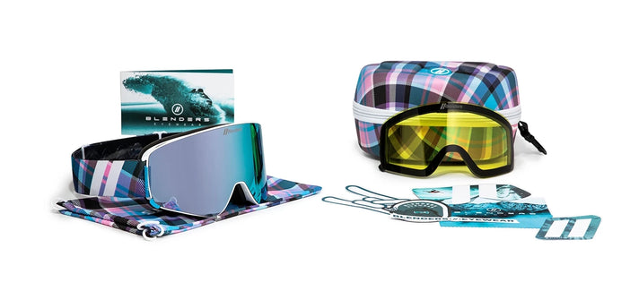 We’re all about bonuses at Blenders. With every ‘Aura’ goggle, you’ll receive a complimentary, matching Ethylene Vinyl Acetate (EVA) case, renowned for its durability and toughness. Also included is a matching drawstring cinch pouch and a spare low-light lens to help you slay the slopes no matter the conditions.