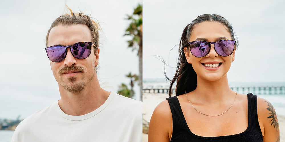 Blend Out with 'Flash Riley.' These round sunglasses are a chic and spicy entry into our ‘North Park X2’ collection. We’ve matched an eye-catching, glossy black-and-brown tortoise frame with gold-colored metal temples for a dazzling look and a high-end feel. And that lavender PureBlend™ lens? Spectacular!