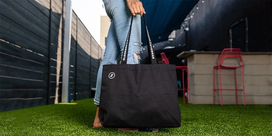 Sometimes Living Forward and getting out there means taking a bit of home with you. And whether you’re stowing beach gear, stuffing gym clothes, or stashing that all-important backup pair of Blendz, our 'Hyphy Heat' tote bag is here to make every journey better. The wide-top opening and dual-strap design make packing breezier than a day on the boardwalk, and the 100% cotton construction makes cleaning stupid easy. This trendy tote bag comes in all-black and sports Blenders badging on the top edge and straps, proudly announcing to all that you know how to get after it every day.
