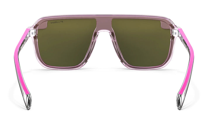 Neon Avenue' really leans into that notion. A hot pink, mirrored single-lens design and pinstriped crystal clear arms say so much without ever uttering a word. The metal wire core is more than a stylish touch — it also enhances fit and comfort. And the exclamation mark on the whole package? Our premium, polarized PureBlend™ Lens with its superior scratch resistance.