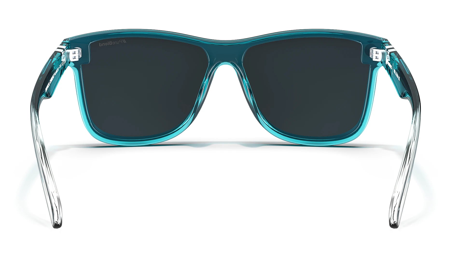 Tropical Current was inspired by sun-soaked travels and the shifting colors of the ocean. A Polarized PureBlend™ Blue Mirror lens anchors the look, while teal-to-clear temples flow together to mimic the movement of tropical waters. Finished with gloss silver hardware throughout, it delivers a premium, polished feel built for summer days, coastal escapes, and standout style wherever the current takes you.