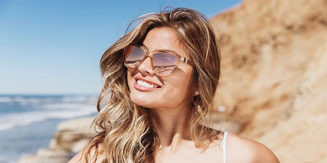'Sundance Hit' sets the stage for good times. The champagne lenses are polarized to reduce glare and improve outdoor visibility, while the Champagne-colored temples are made of metal for a sophisticated dose of durability. And as with all our Blendz, these sure as hell look the part, with a semi-transparent, glossy peach frame and a set of crystal clear ear rests that dazzle with their tone-matching tortoise pattern. Whether at the beach or on the festival circuit, ‘Sundance Hit’ shines.