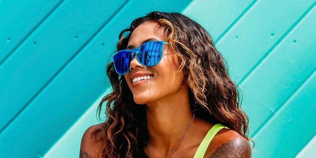 Light it up with ‘Neon Dreamer.’ These polarized sunglasses blend the mixed-material design of our ‘North Park X2’ style with a brilliant neon color. Metal temples enhance durability, and crystal tips complement the electric blue aesthetic. Also featuring our premium PureBlend™ Lens for superior scratch resistance.