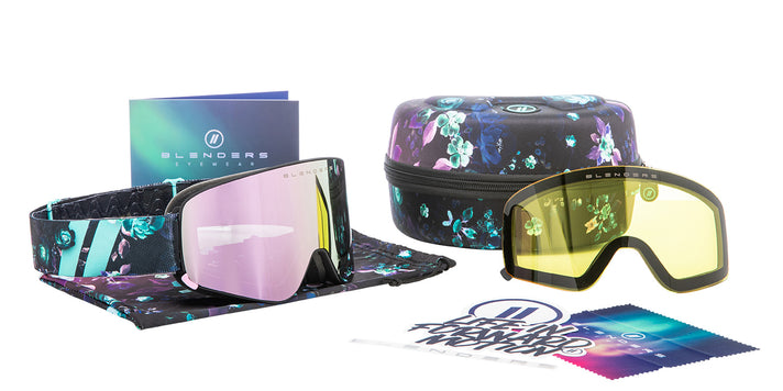 We’re all about bonuses at Blenders. With every ‘Aura’ goggle, you’ll receive a complimentary, matching Ethylene Vinyl Acetate (EVA) case, renowned for its durability and toughness. Also included is a matching drawstring cinch pouch and a spare low-light lens to help you slay the slopes no matter the conditions.