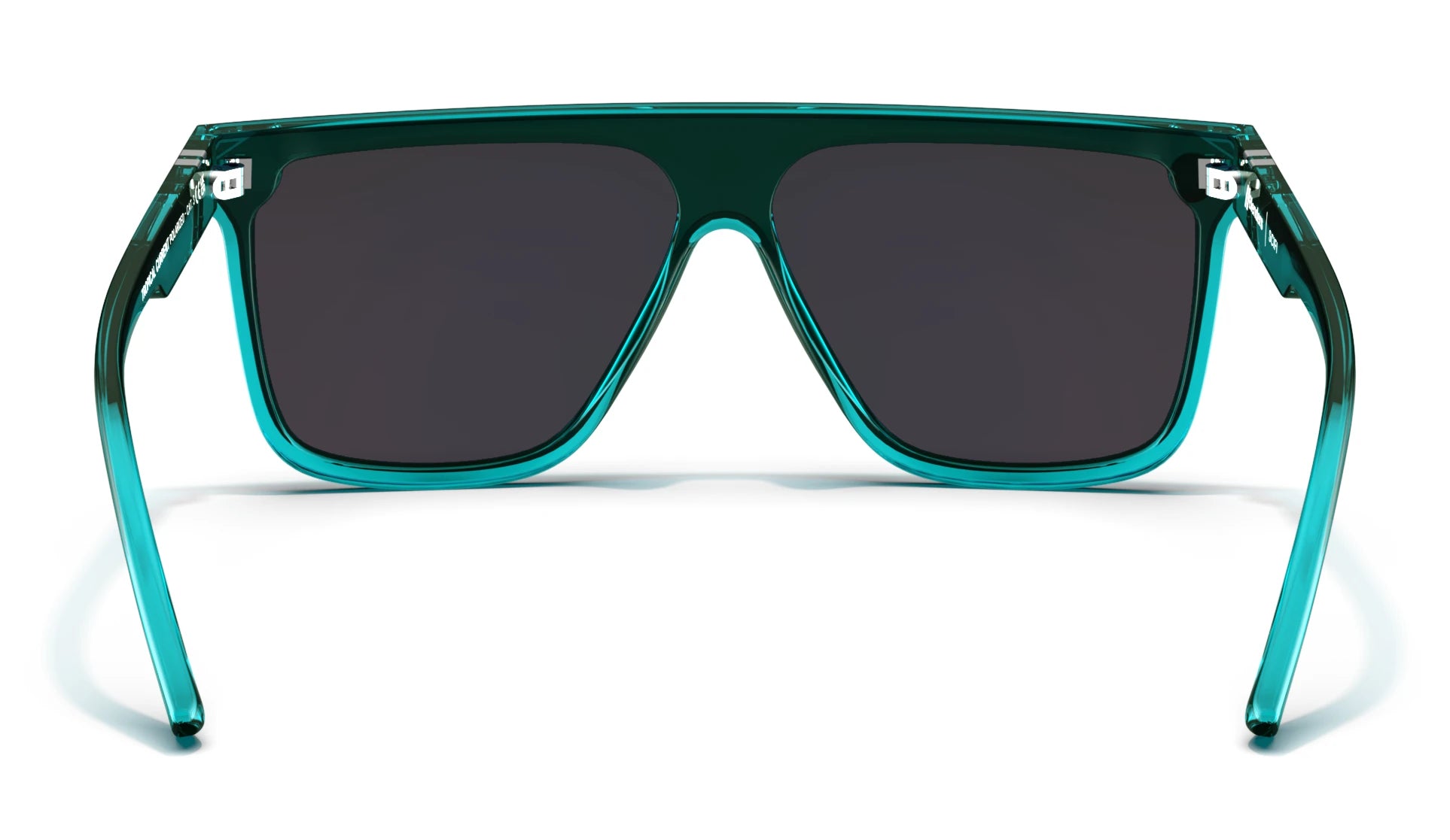 Tropical Current leans into adventure with a monochromatic transparent teal frame and matching temples. A polarized blue mirrored lens adds standout color, while gloss silver accents bring a futuristic edge. Built to turn heads wherever the next trip takes you.