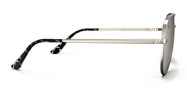 Matte Silver' is the classic aviator with a Blenders twist. A silver metal frame and mirrored polarized lenses keep it casual with complementary tones — but check out the ear tips. A crystal gray and black tortoise pattern adds some spice, sending your style Forward.