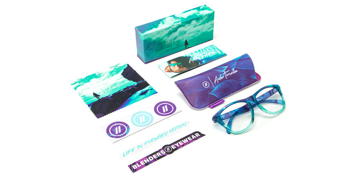 Break free from the harmful effects of prolonged screen time with the Amber Torrealba ‘Blenders Blue Light’ glasses. These specs help you win the day by reducing eye strain, headaches, and fatigue associated with digital displays, all without sacrificing style. The multi-colored floral pattern at the sides and top front is dynamically contrasted by a semi-transparent teal lower frame, and the lenses are crystal clear without the regrettable yellow tint seen in some competing blue light glasses. Put simply, these signature specs are here to make great style a lifestyle.